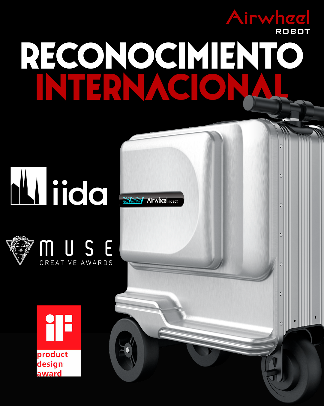 Airwheel es una marca reconocida internacionalmente, contamos con más de 20 años en la industria de la movilidad urbana. Nuestras maletas están creadas con la finalidad de transportar tanto tus pertenencias como a ti mismo, cuenta con motor eléctrico que permite desplazarte cómodamente en tus viajes, ideal para esos días de escalas entre aeropuertos.